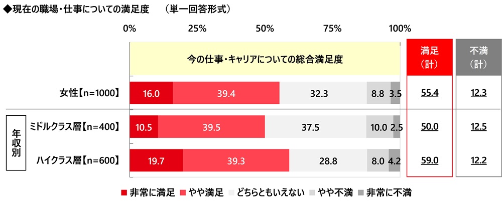 現在の仕事・キャリアに対する総合満足度 ミドル・ハイクラス女性の5割半