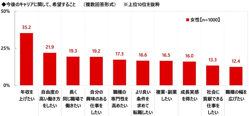 今後のキャリアに関する希望 「年収を上げたい」が3割半