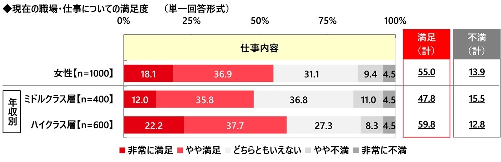 「仕事内容」に対する満足度 ハイクラス女性では6割