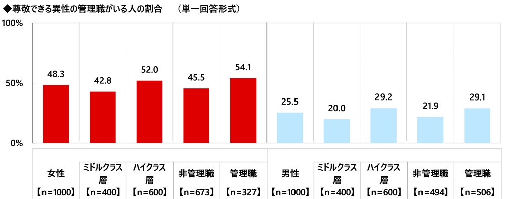 「尊敬できる異性の管理職がいる」 管理職女性では5割半