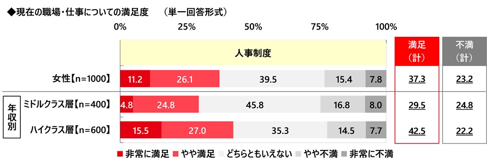 「人事制度」に対する満足度 ミドルクラス女性では3割