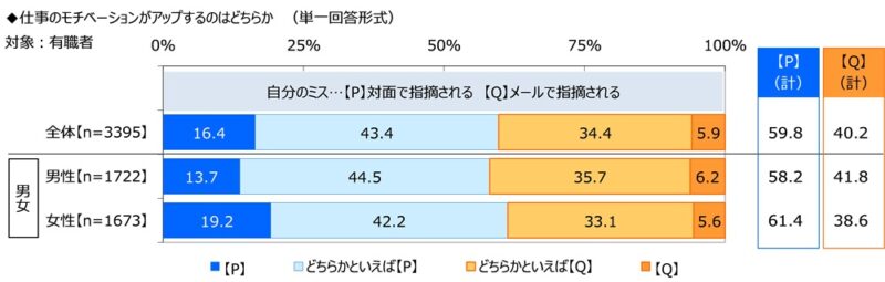 「自分のミスは、“メールで指摘される” より “対面で指摘される”」60%、