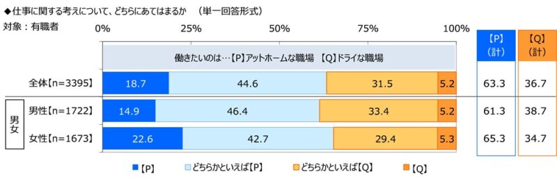「働きたいのは、“ドライな職場” より “アットホームな職場”」63%、