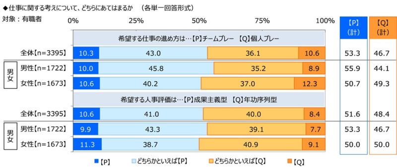 「希望する仕事の進め方は、“個人プレー” より “チームプレー”」53%、