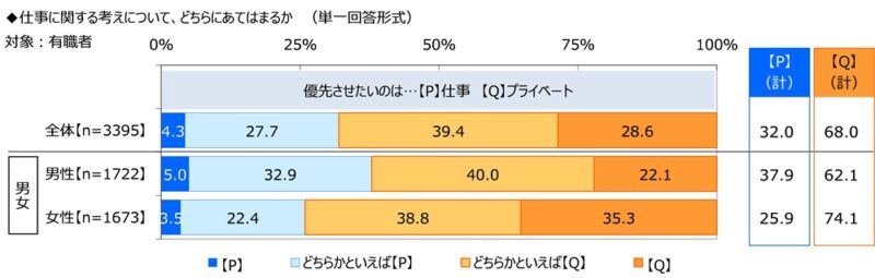 「優先させたいのは、“仕事” より “プライベート”」68%