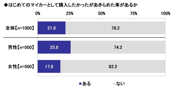 「はじめてのマイカーとして購入したかったがあきらめた車がある」21.8%