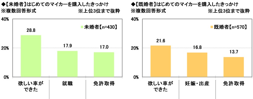 はじめてのマイカー購入のきっかけが「妊娠・出産」の人では「乗り降りしやすい」が29.2%