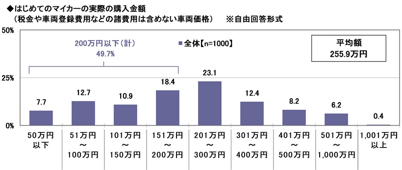 はじめてのマイカーの実際の購入金額 平均は255.9万円