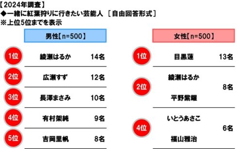 一緒に紅葉狩りに行きたい芸能人