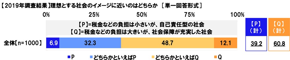 「理想とする社会のイメージは“税金などの負担は小さいが、自己責任型の社会”に近い」は