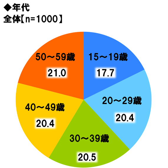 有効回答数:1,000サンプル(有効回答から男女比が均等になるようランダムに抽出)