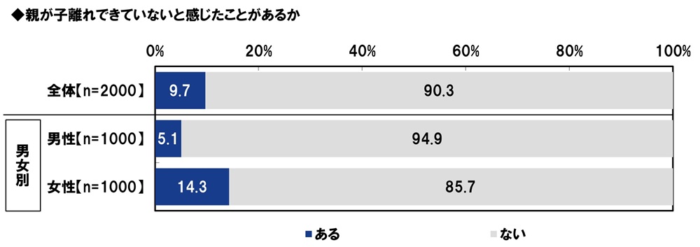 「自身が親離れできていないと思う」「親が子離れできていないと思う」は10人に1人