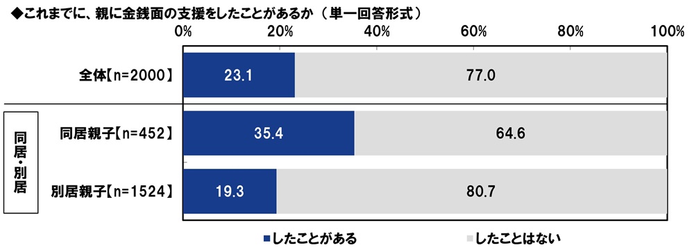 金銭の支援は一方通行? “親に金銭面の支援をしたことがある人”は23%、