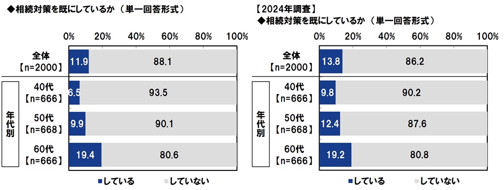 全回答者(2,000名)に、相続対策を既にしているかを聞いたところ、「している」は11.9%、「していない」は88.1%となりました。