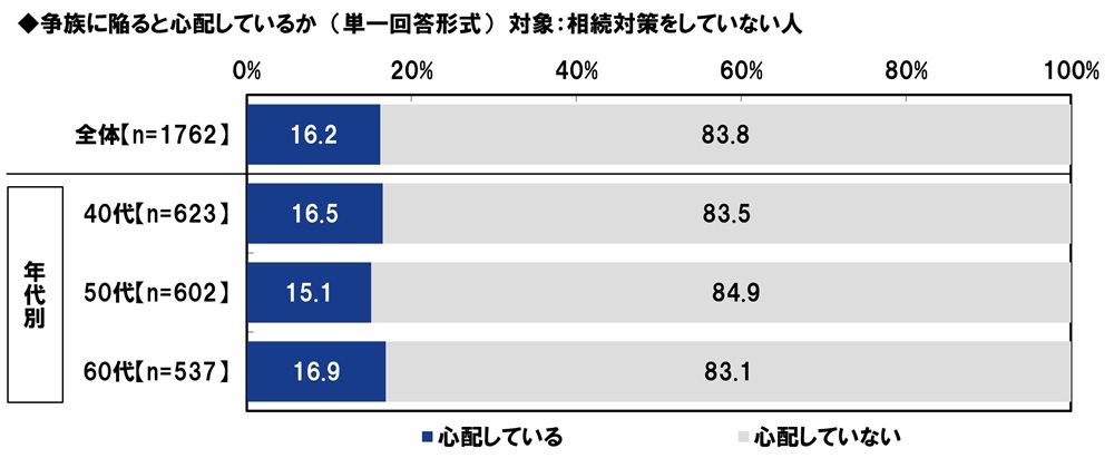 「争族に陥ると心配している」相続対策をしていない人の約6人に1人、