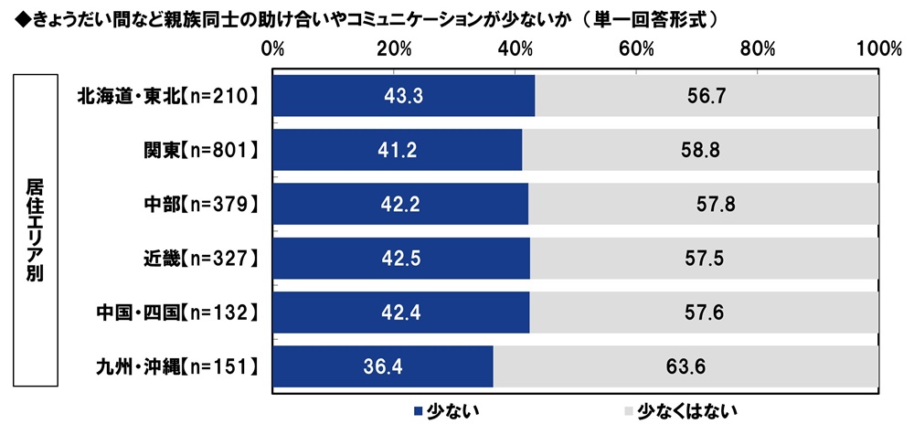 「きょうだい間など親族同士の助け合いやコミュニケーションが少ない」約4割、