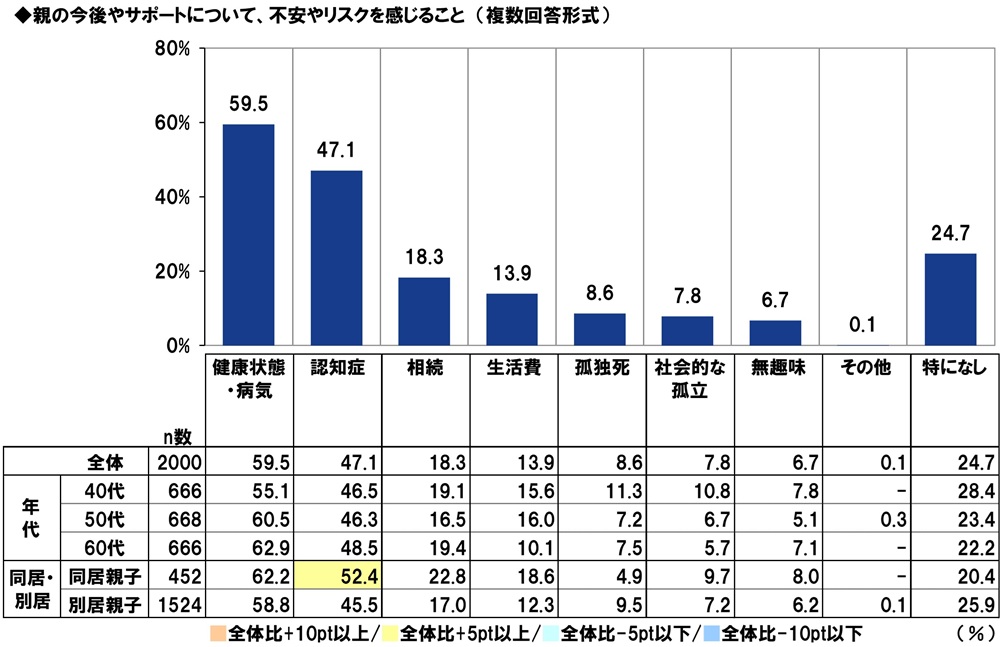親の今後やサポートについて不安やリスクを感じることTOP2 「健康状態・病気」「認知症」