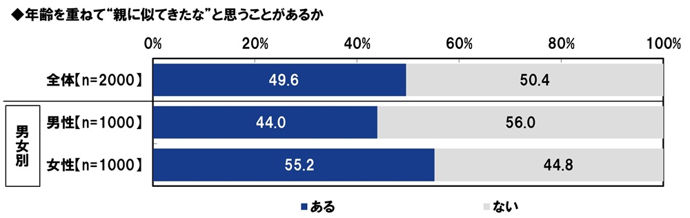 「年齢を重ねて“親に似てきたな”と思うことがある」は約半数