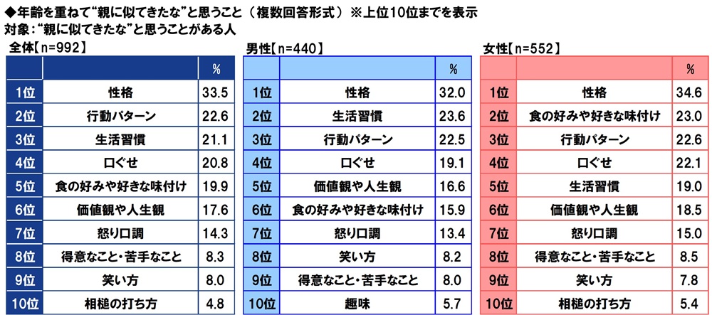 “親に似てきたな”と思うこと 1位「性格」2位「行動パターン」3位「生活習慣」