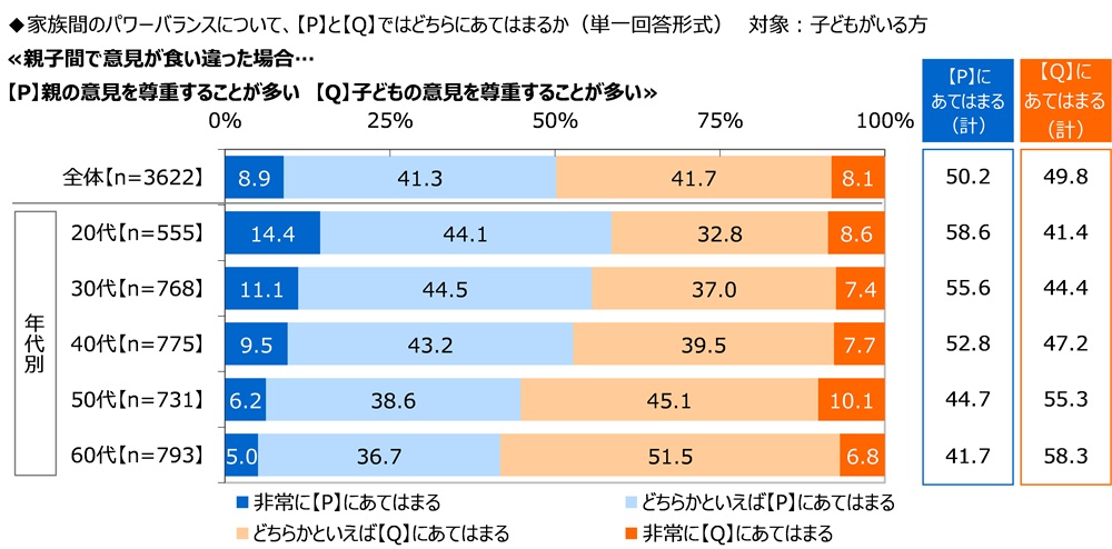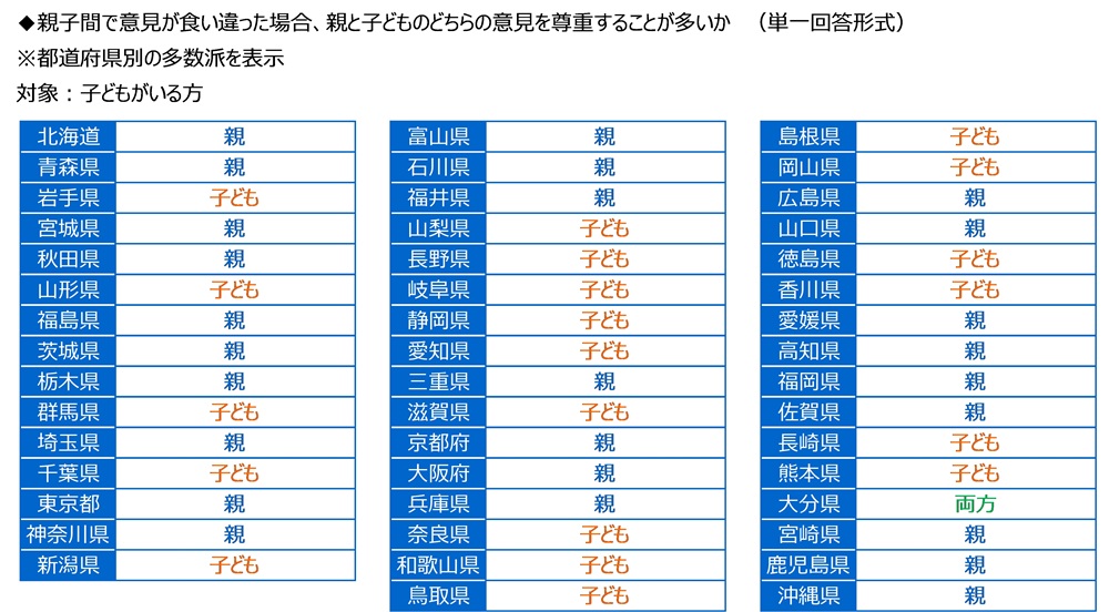 親子間で意見が食い違った場合 「親」「子ども」で拮抗する結果に