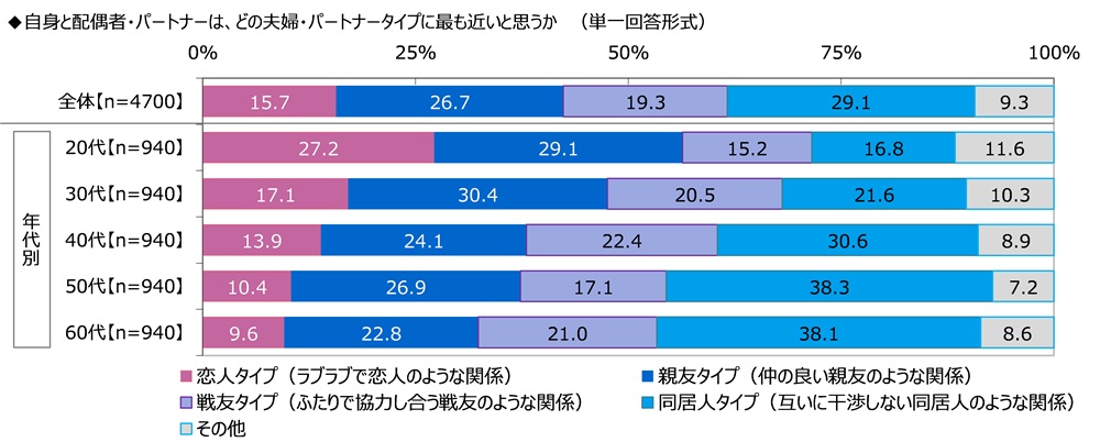 夫婦・パートナータイプは? 最多は“同居人タイプ”! 20代では4人に1人が“恋人タイプ”
