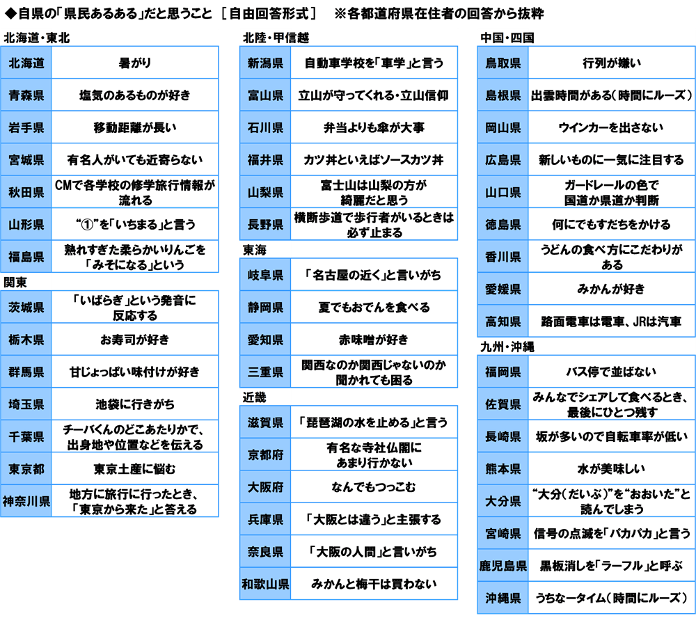 各都道府県の在住者(各都道府県100名)に、自県の“県民あるある”だと思うことを聞きました。