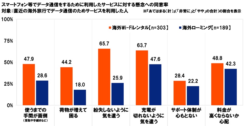 懸念度はいずれの項目でも“海外Wi-Fiレンタル”より