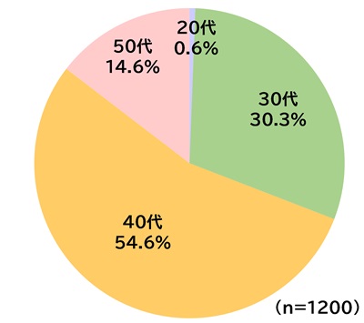 保護者の年齢層で最も多い層が40~49歳(54.6%)、次いで30~39歳(30.3%)、50~59歳(14.6%)、20~29歳(0.6%)。