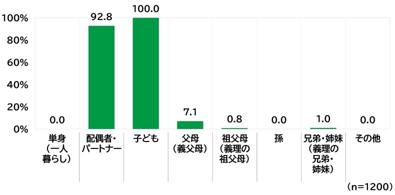 回答者と同居する家族構成は、核家族世帯が多くを占める。