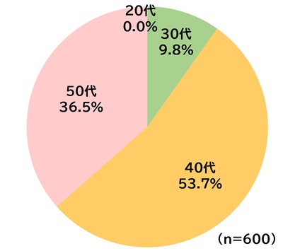 保護者の年齢層で最も多い層が40~49歳(53.7%)、次いで50~59歳(36.5%)、30~39歳(9.8%)。
