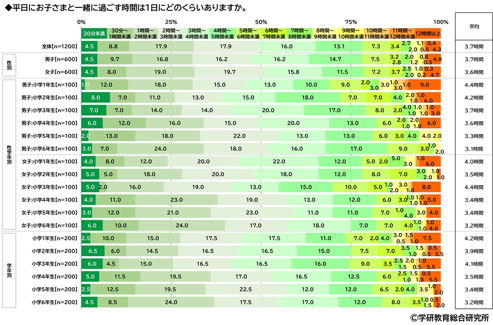 平日に小学生の子どもと一緒に過ごす時間 平均3.7時間