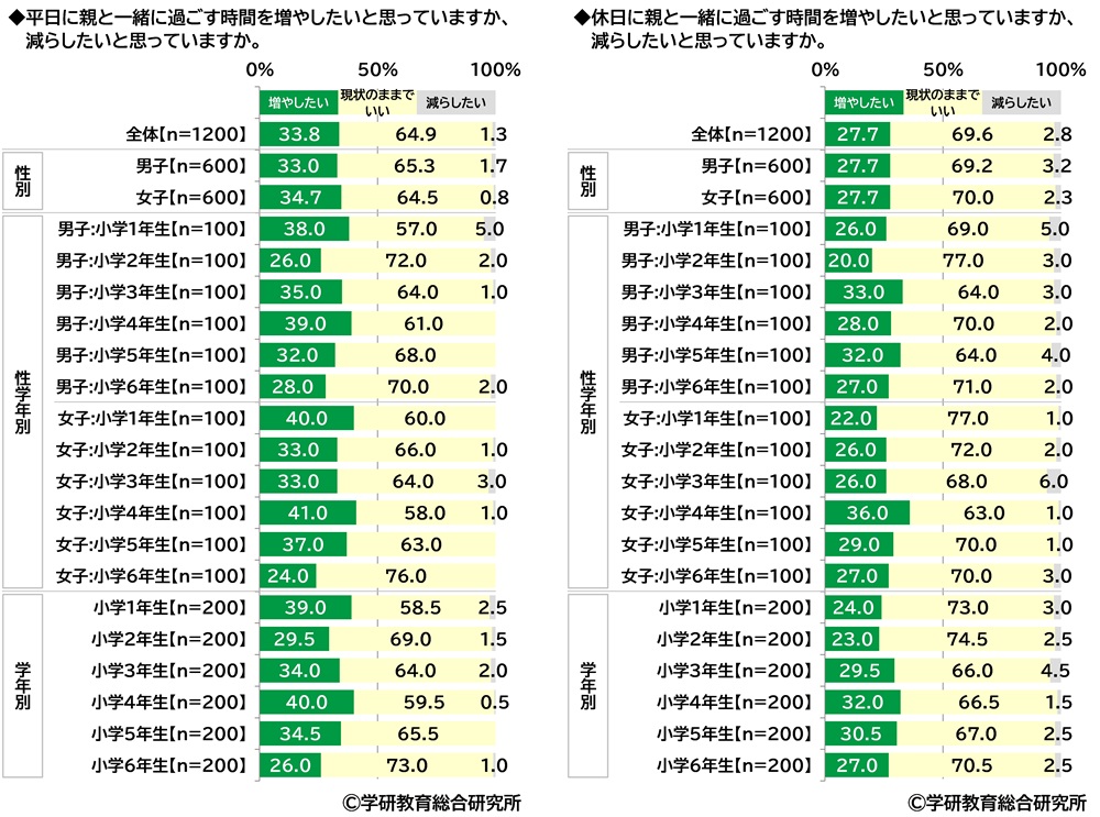 「平日に親と一緒に過ごす時間を増やしたい」小学生の34%