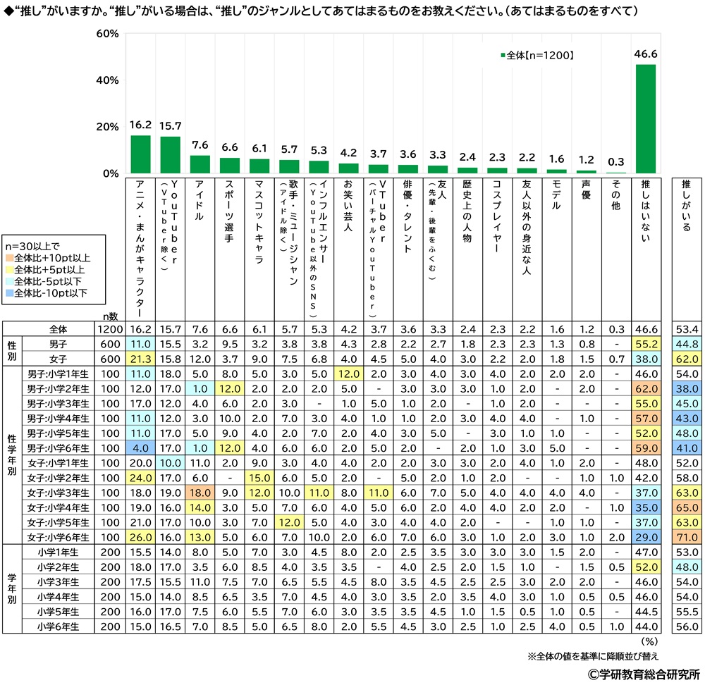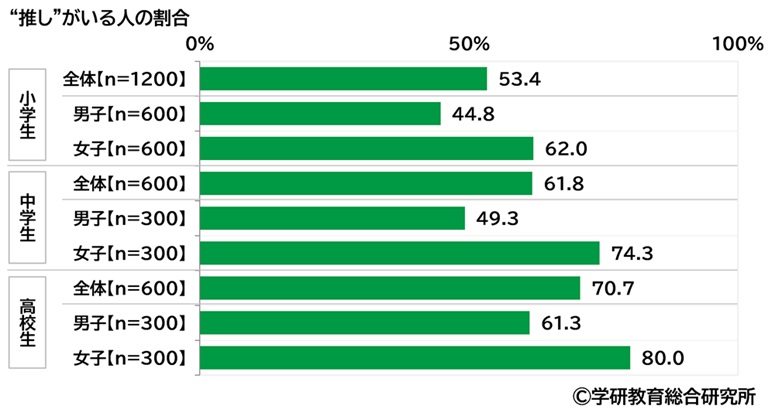 「推しがいる」小学生の53%