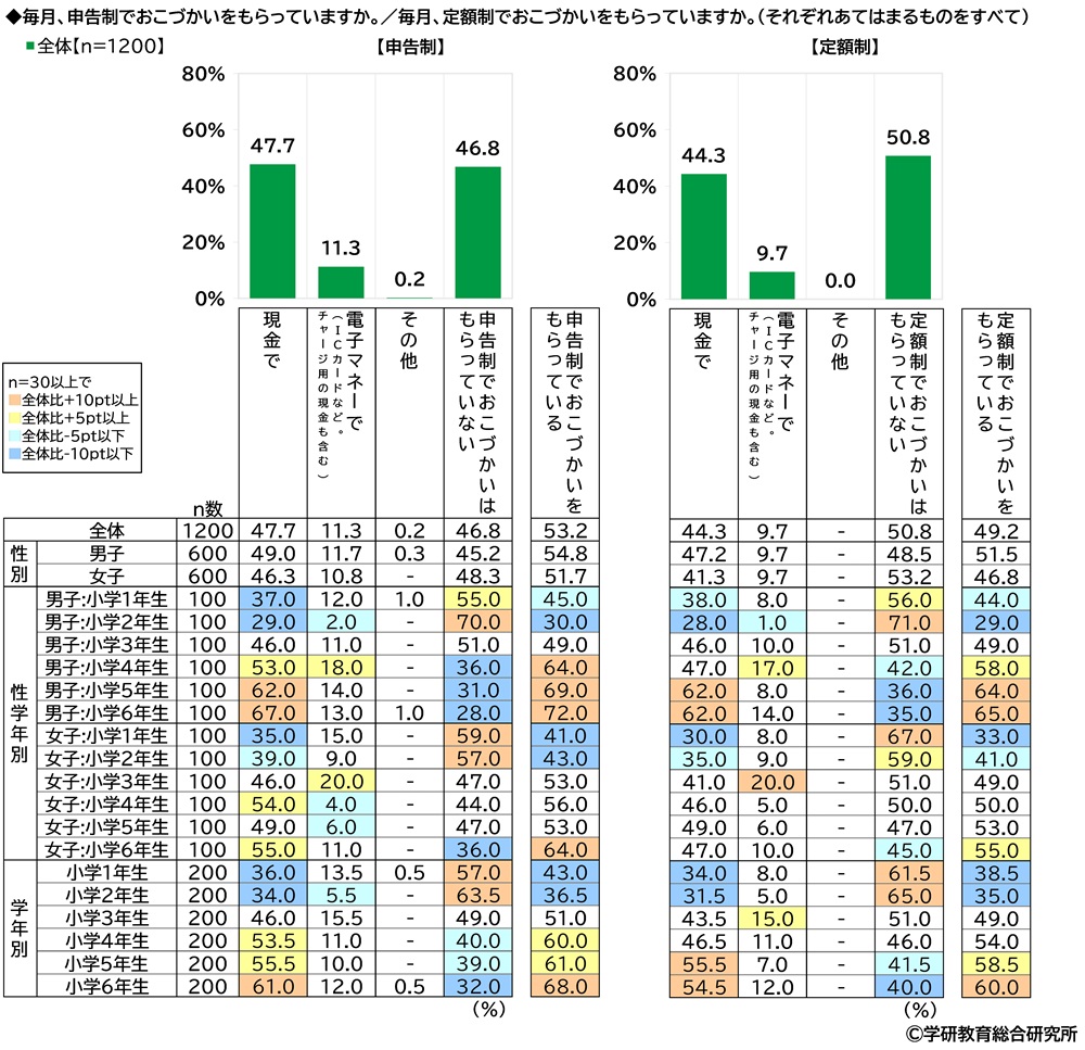 小学生のおこづかいのもらい方 「申告制でもらっている」53%、「定額制でもらっている」49%