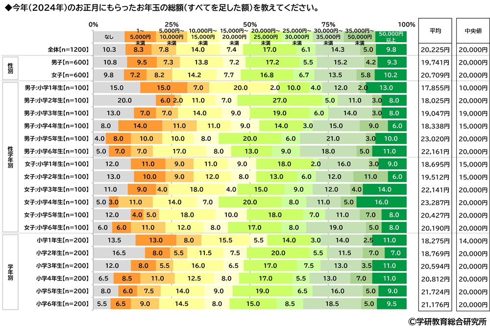 小学生が今年のお正月にもらったお年玉 もらった金額は平均20,225円、2023年調査から839円減少