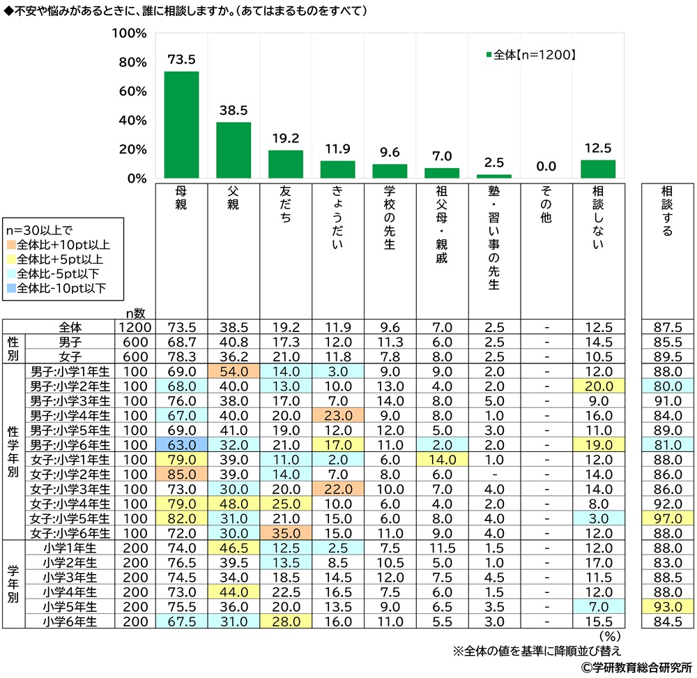 「不安や悩みがあるときでも相談しない」小学生の8人に1人