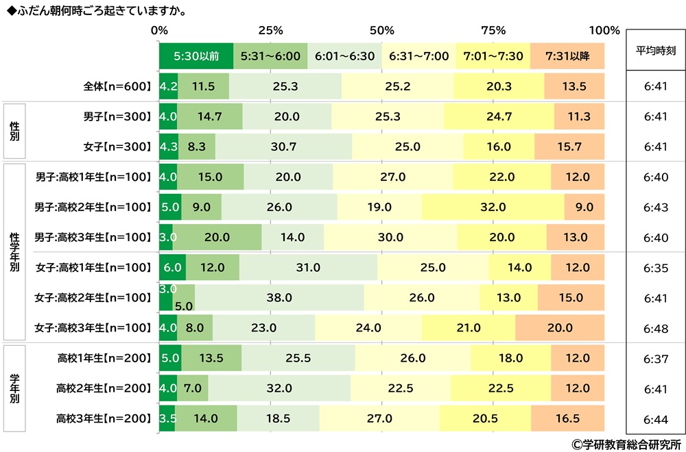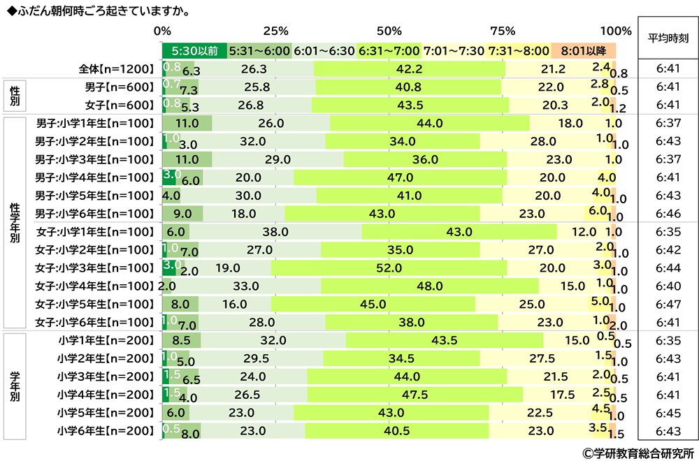 過去の調査と比較すると、平均時刻は、6:35(2020年)→6:39(2021年)→6:36(2022年)→6:38(2023年)→6:41(2024年)と、今回調査では6:40台となり2年前より5分遅くなりました。