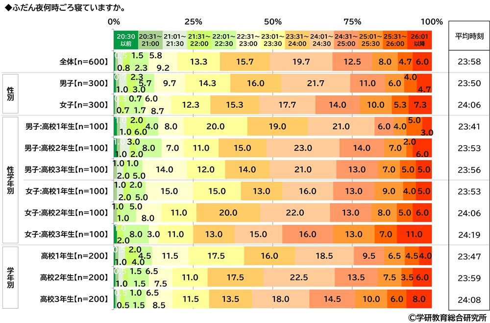 平均就寝時刻は23:58、3年生の女子では24:19