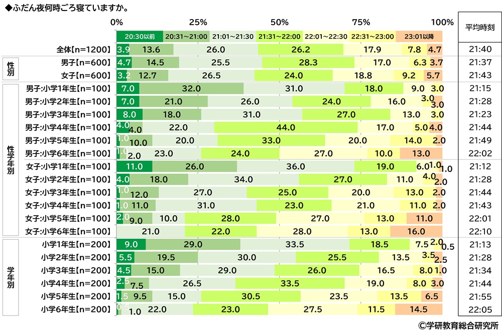 平均就寝時刻は21:40、6年生では22:05