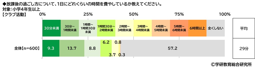 小学4年生以上では、「クラブ活動」に費やしている時間の平均は29分でした。