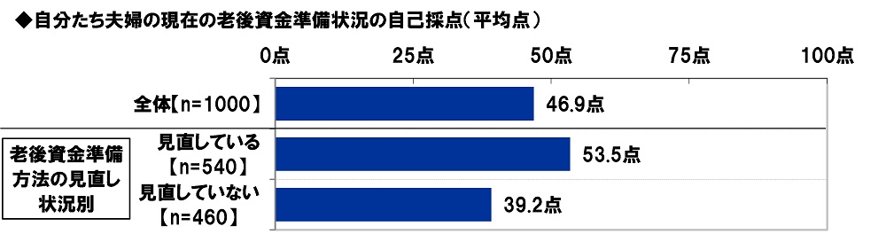 夫婦の現在の老後資金準備状況の自己採点 平均は47点、