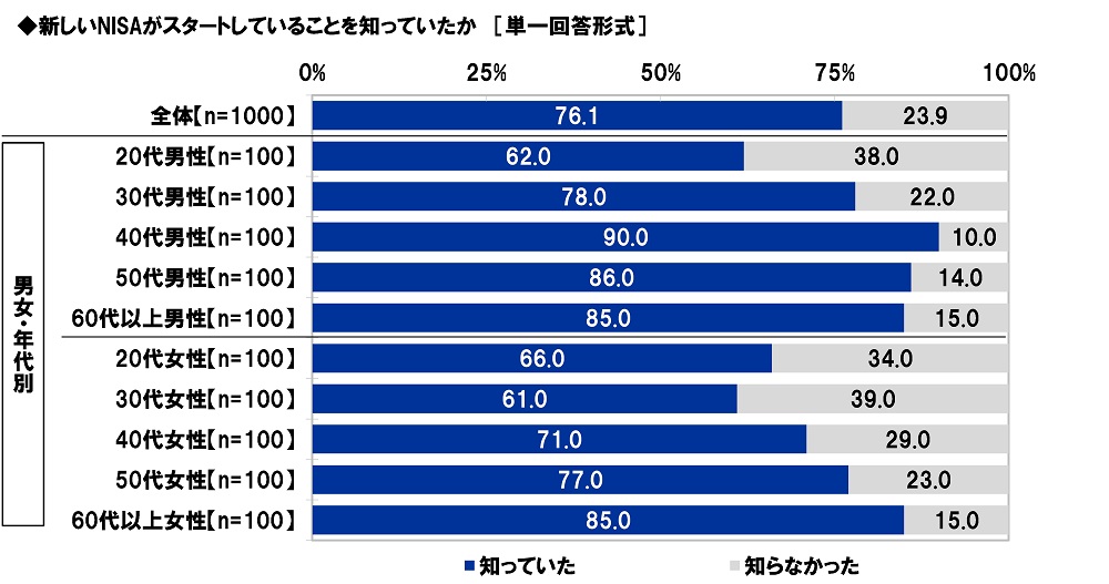 “新しいNISA”の認知率は76%、40代男性では90%