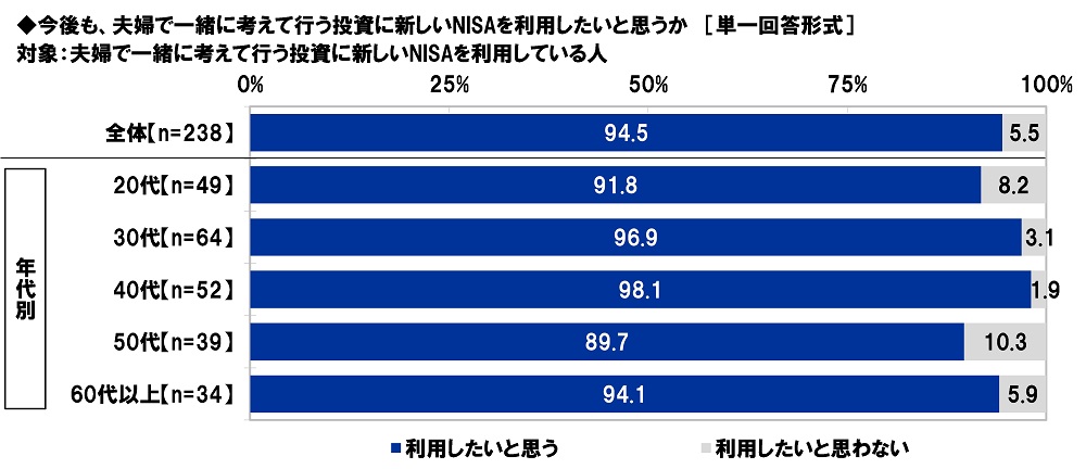夫婦で一緒に考えて行う投資に新しいNISAを利用している人の95%