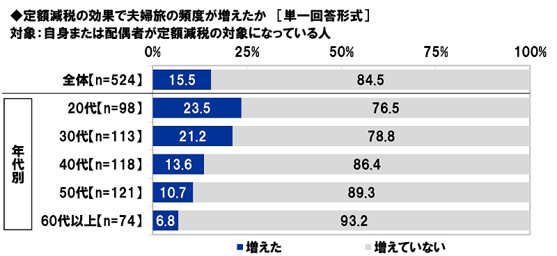 「定額減税の効果で夫婦旅の頻度が増えた」定額減税対象者の16%、20代では24%