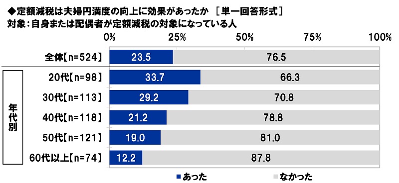 「定額減税は夫婦円満度の向上に効果があった」定額減税対象者の24%、20代では34%