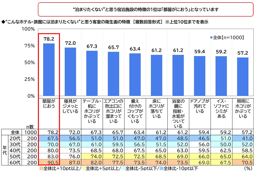 60代の91%が「部屋がにおう」ホテル・旅館には泊まりたくないと回答
