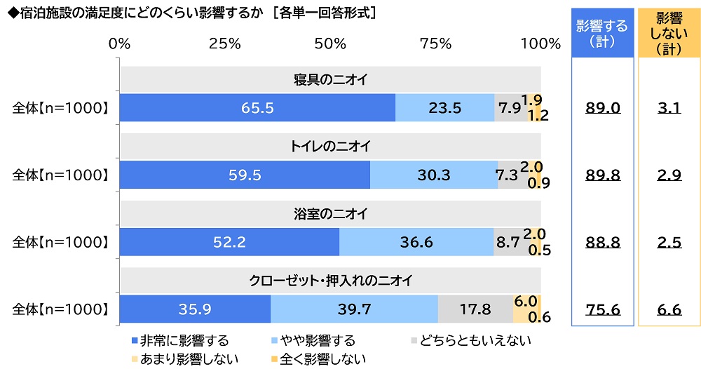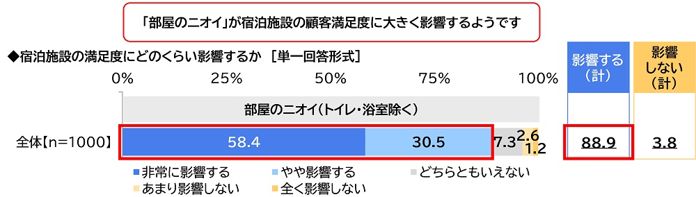 「部屋のニオイが宿泊施設の満足度に影響する」89%