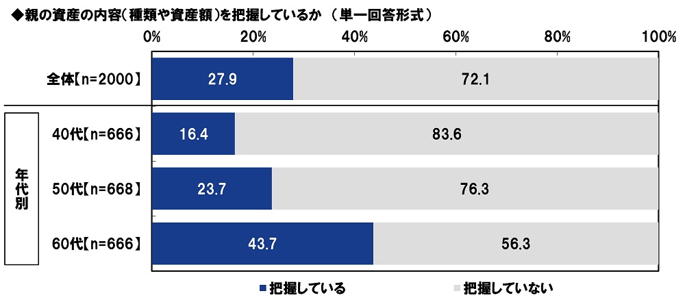 「親の資産の内容(種類や資産額)を把握していない」7割強、40代の子では8割強に