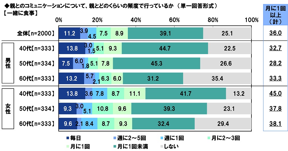 「月に1回以上、親と一緒に食事をする」40代女性では4割半