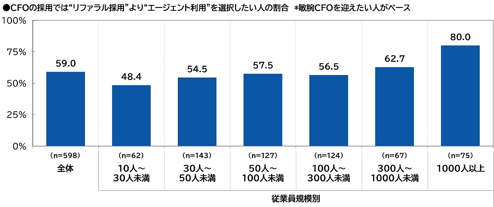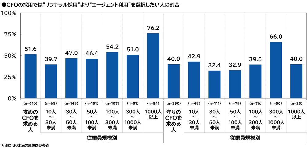 「CFOの採用では“リファラル採用”より“エージェント利用”を選択したい」47%、従業員規模1,000人以上では68%